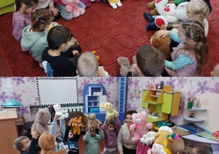 Вихованці разом з дорослими дошкільного навчального закладу прийняли участь у флешмобі "Прийди на навчання або роботу з ведмедиком". Діти з радістю принесли до садочка свої улюблені ведмедики, якими весело гралися та подарували гарний настрій собі та іншим.