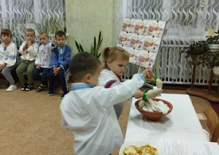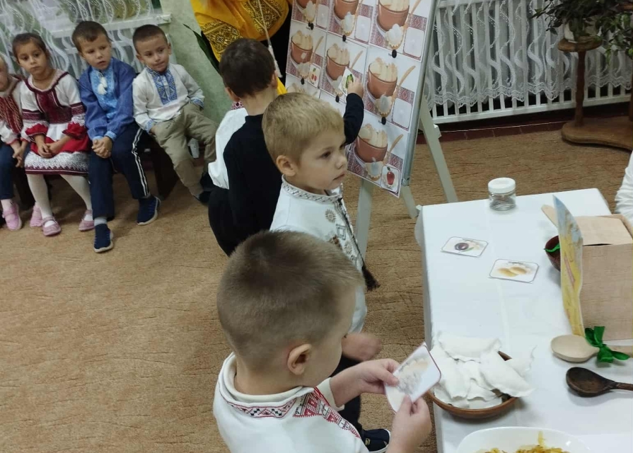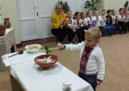 Це смачне і веселе українське свято відзначали сьогодні в садочку. Діти дізналися про традиції та кулінарні страви нашого народу. Веселі ігри, запальний танок, цікава незвичайна вистава гарних господарів підняли настрій усім присутнім. Лунав сміх та на всю залу пахло справжніми варениками. Цю смачну українську страву діти куштували за обіднім столом.