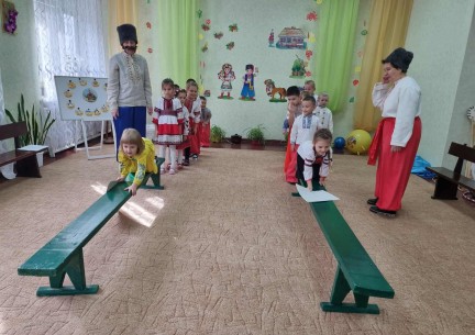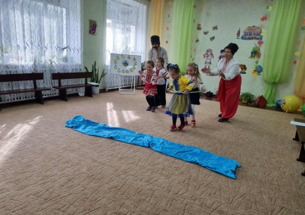 Дошкільнята під час заходу дізналися багато цікавого про життя козаків, історію нашого минулого. З мужніми козаками змагалися в командних естафетах, іграх, виконували різноманітні завдання, щоб отримати символ влади, відваги - козацьку булаву. Разом з Берегинею, охоронницею роду виконували пісні, таночки.