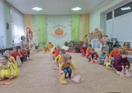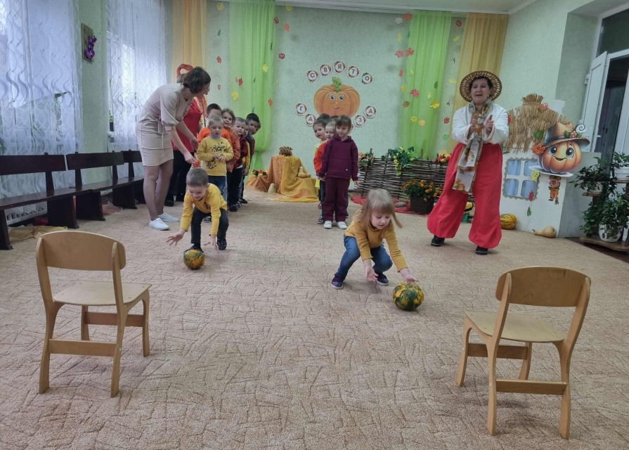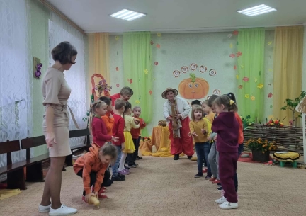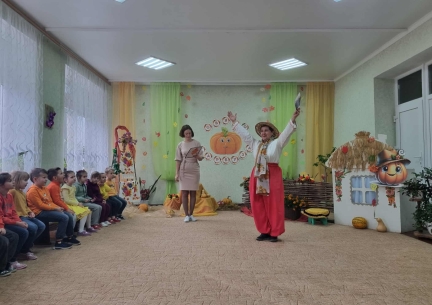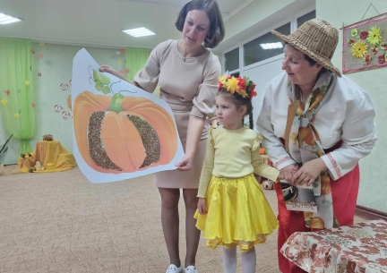 Дошкільняти старшої групи "Зернятко" завітали на справжнє свято - "Іменини Гарбуза!" Діти співали пісень, танцювали, грали в оркестрі, змагалися та з любов'ю вітали головного героя свята - кругленького, сонячного Гарбуза! Наші маленькі артисти подарували батькам гарний настрій, а зал наповнився атмосферою доброти, радості й справжнього осіннього дива. Цікаву невелику музичну сцену "Ходить Гарбуз по городу" зіграли батьки вихованців, проявивши свої артистичні здібності та музичні таланти. Приймали активну участь у вікторині "Гарбузові цікавинки".